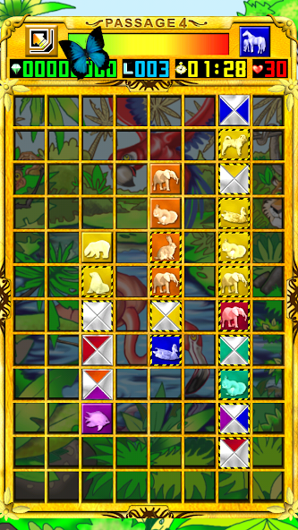 완성 된 행과 열 ( 'Passages')은 보드에서 사라집니다.