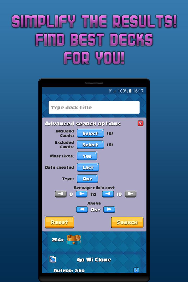 메인 Clash Royale Play 전략 인 The Deck을 기반으로하는 매우 멋진 설계 앱입니다. 이 응용 프로그램을 통해 사용자는 자신이 좋아하는 데크를 저장하고 결코 잃지 않을 수 있습니다. 또한 많은 숙련 된 플레이어가 강력한 데크를 추가하는 로비가 있습니다. 우리는 출판 된 데크를 돌보기 위해 연주 가능한 데크 만 있는지 확인하는 관리자가 있습니다. 또한 데크 사용 방법에 대한 자세한 내용은 "정보"버튼이 있으며 설명을 볼 수 있습니다 (데크 사용법이 작성되기를 바랍니다) : D