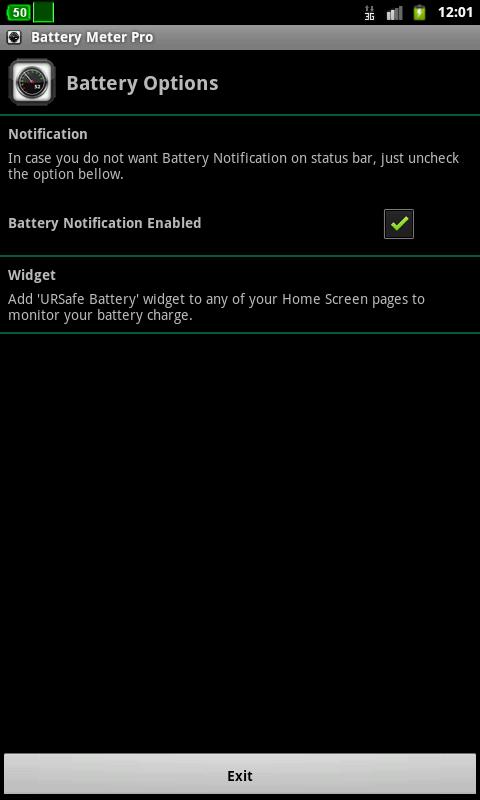 애플리케이션의 기본 페이지에서 모든 화면에서 배터리 충전을 제어 할 수있는 배터리 알림을 활성화/활성화하여 선택할 수 있습니다.