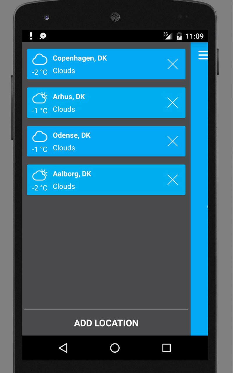 - VerticAlllement 화면을 스윕하여 일기 예보를 업데이트하고