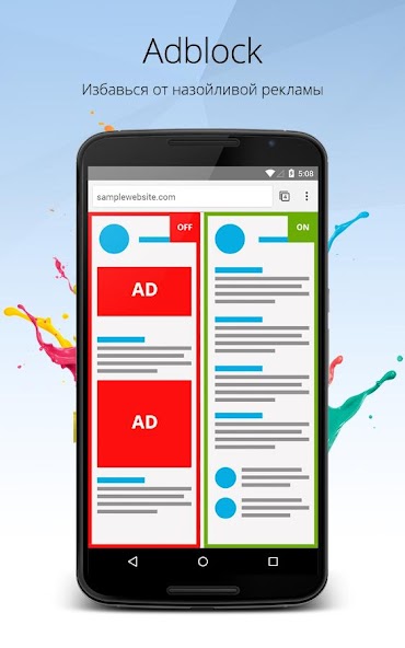 - A built-in adblocker will help you to get rid of annoying fraudulent ads and SMS scams