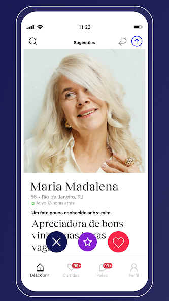You can check "yes" to like or "no" to discard the suggested profiles. You can also see the Tops of the Day, people that we believe suit you best!
