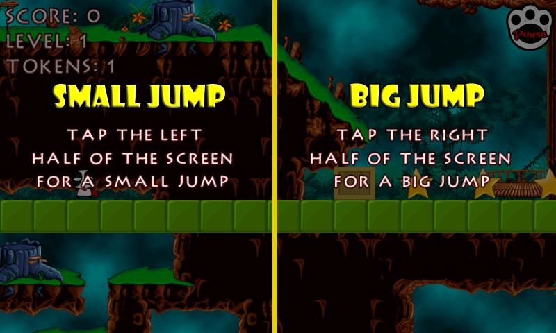 - Tap the left half of the screen for a smail jump