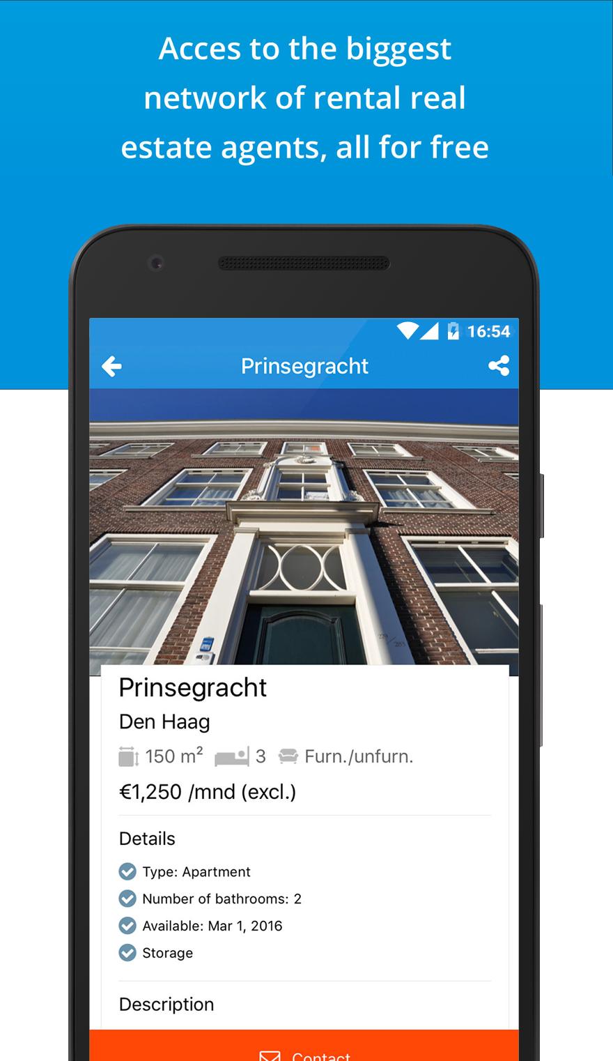 Pararius will provide you with rental properties based on your search preferences and enables you to view pictures and detailed descriptions of rental properties.