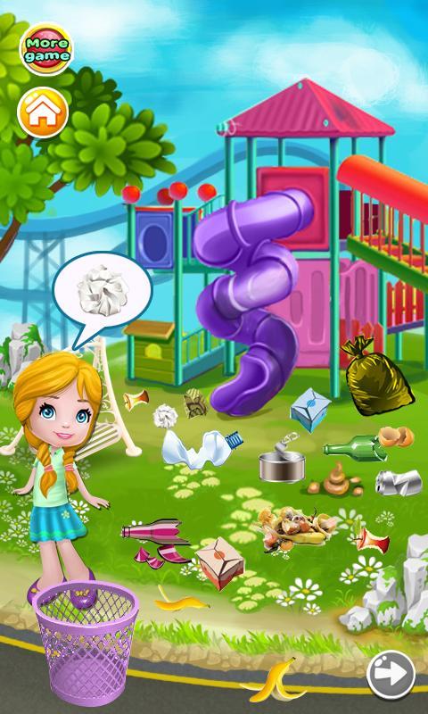 Hi, we all know that it is very important to live in a clean environment, oxygen is necessary for life. We should help to have clean air. If we live in a clean environment we are healthy and happy. Since we were small our parents teach us that we have to take the garbage only in specially designated baskets. The parks are beautiful, there children play and enjoy the fresh air. In this kids game you will have the opportunity to help clean up a park that is near our house. Every day we go there but today when we arrived we found it a very dirty, people throwing trash everywhere and now we have to go to clean. This game will make you to feel important because you will do something nice, you'll be able to give smiles to those who come to the park to have fun.