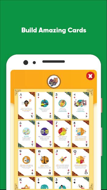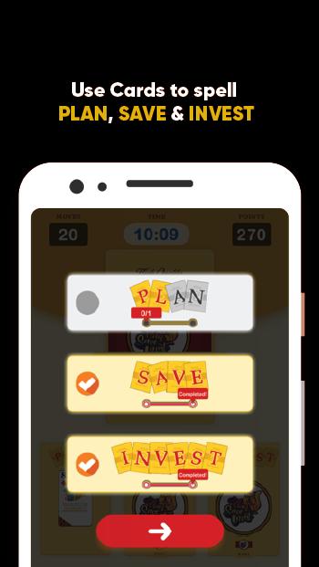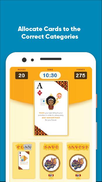 Use skills acquired from playing the physical card game to demonstrate your financial literacy by building unique cards, allocate the cards to the appropriate categories and spell PLAN. SAVE. INVEST. to complete the game and top the leaderboard.