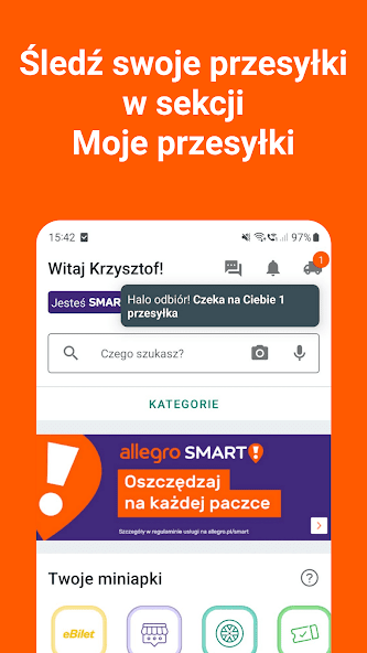 Você também pode usar Allegro Smart! e economize em entregas no aplicativo. Você só precisa pagar uma vez e desfrutar de entrega gratuita durante todo o ano ou mês.