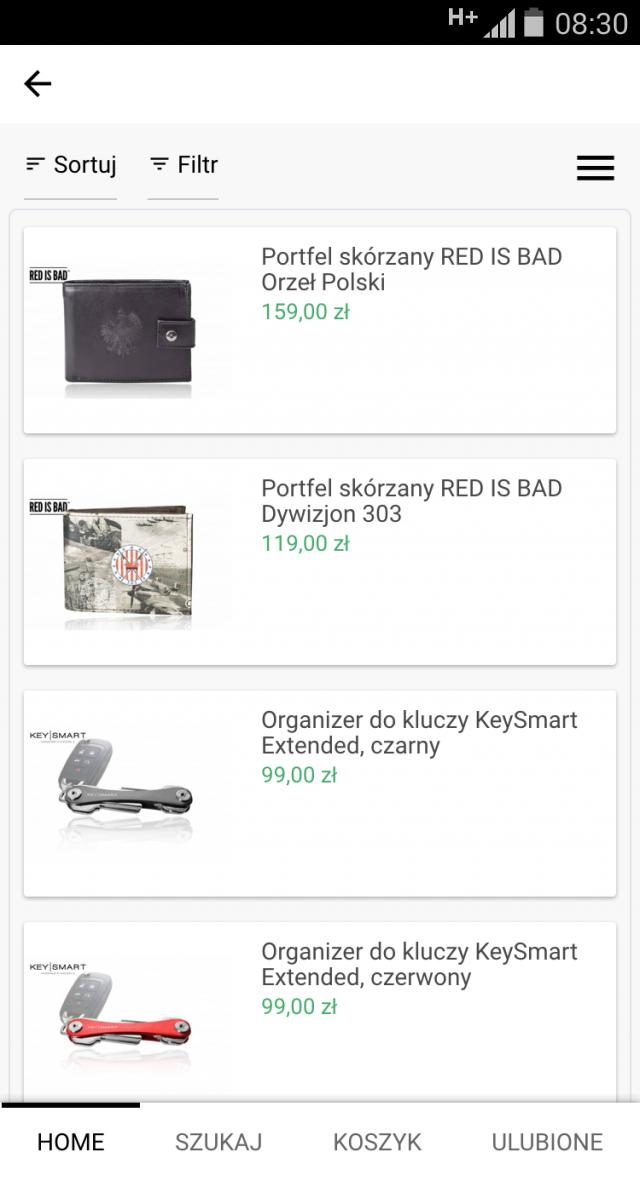 O aplicativo Broni.pl garante uma descoberta e compra rápidas e intuitivas do produto que você está procurando.