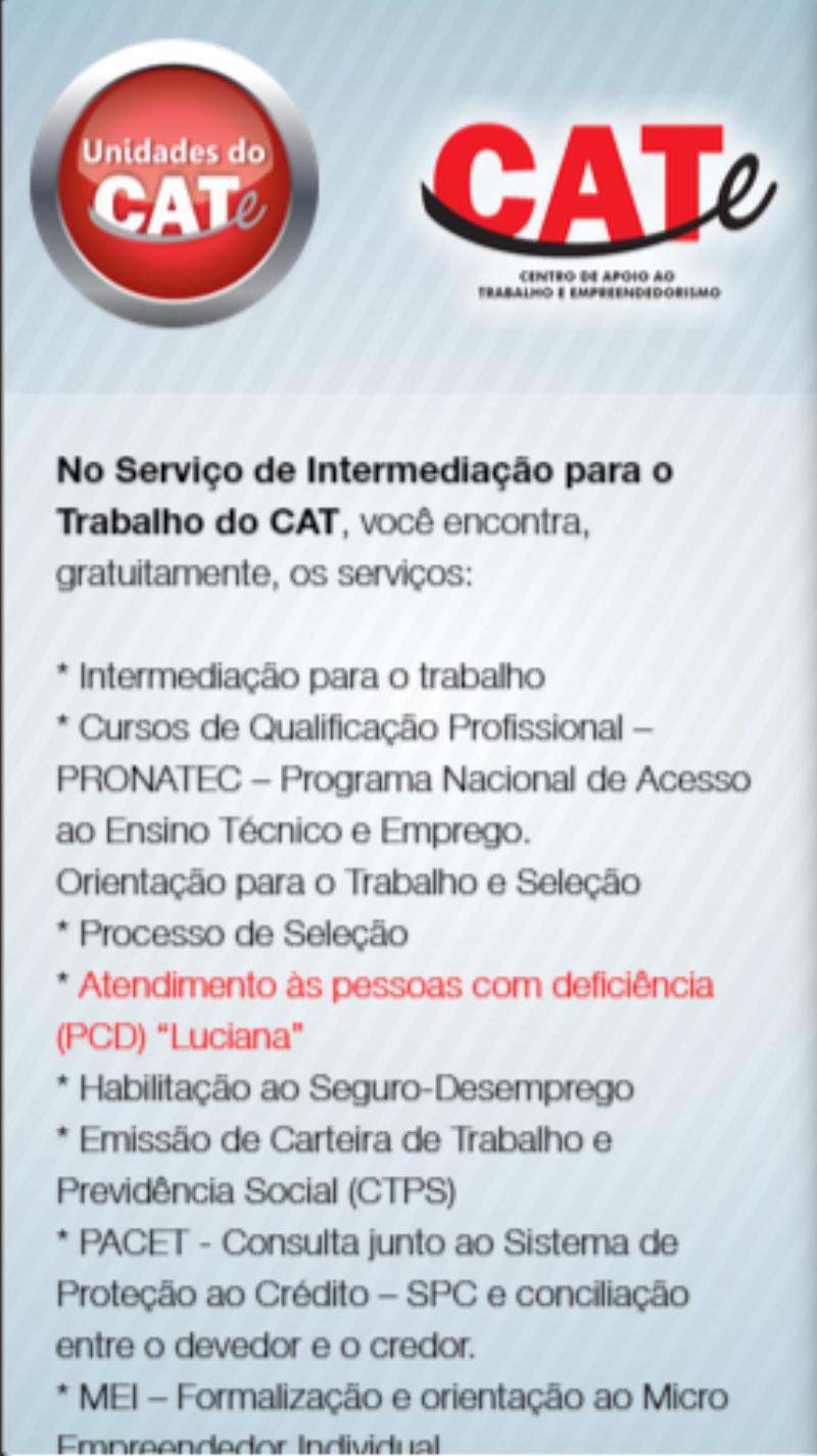 No Serviço de Intermediação para o Trabalho do CATe, você encontra, gratuitamente, os serviços: