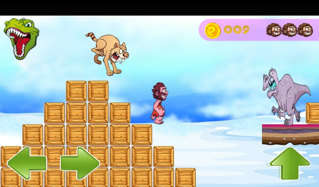 Lelt's Thurning in Ace With nosso homem das cavernas em Michigan, use o controle para se mover e pular de todo o inimigo e obstáculos