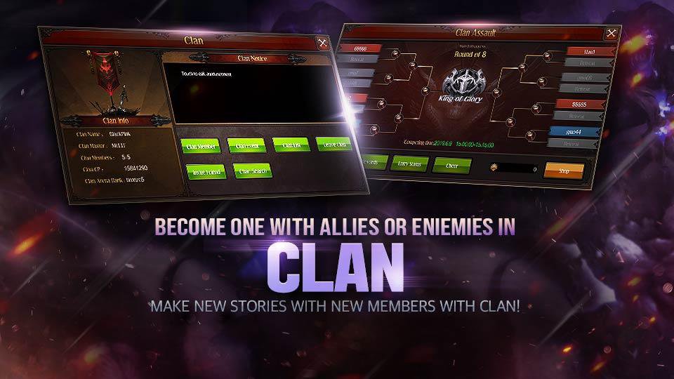 Uma nova arena para testar a camaradagem entre os membros do Clã! Através do jogo Clan Arena, comece sua jornada MMU.ORPG e derrote outros clãs de origem.