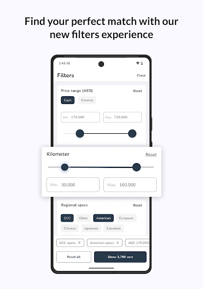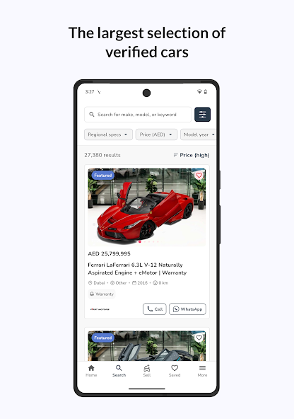 A maior seleção de carros verificados nos Emirados Árabes Unidos está disponível no aplicativo DubiCars .