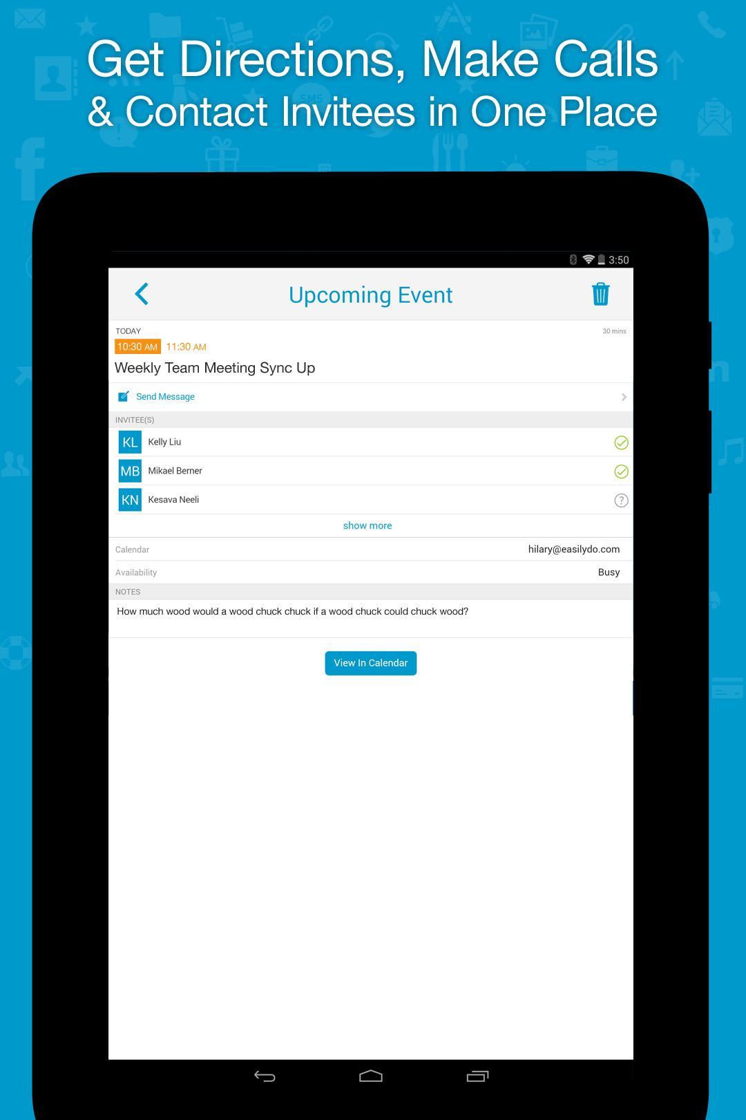 EasilyDo is an app that organizes and notifies you of what matters so that you can stay on top of things. Less work, less worry, and more time for you.