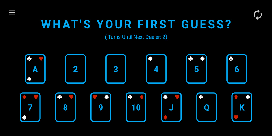 A esperança do jogo é que você não seja o revendedor à medida que o jogo continua, porque fica mais fácil para os jogadores adivinhar a carta.