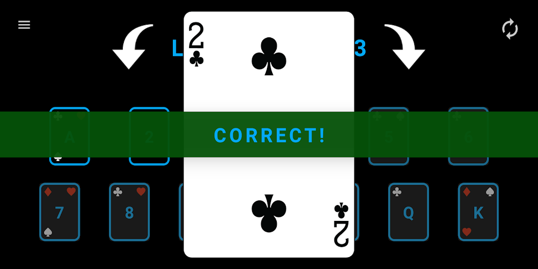 - Se eles adivinham incorretamente, eles adivinham novamente, mas são informados se o cartão for menor ou superior ao seu palpite inicial