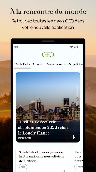 Encontre neste aplicativo de graça todas as notícias do GEO .fr:
