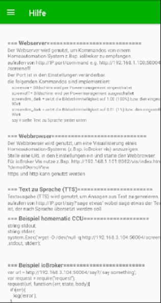 Permite que o tablet seja desligado e flexível ou diminuído usando comandos remotos. Além disso, o aplicativo inclui uma visualização da Web para exibir visualizações de automação residencial baseadas na Web, por exemplo, vis para o iobroker ou outros.