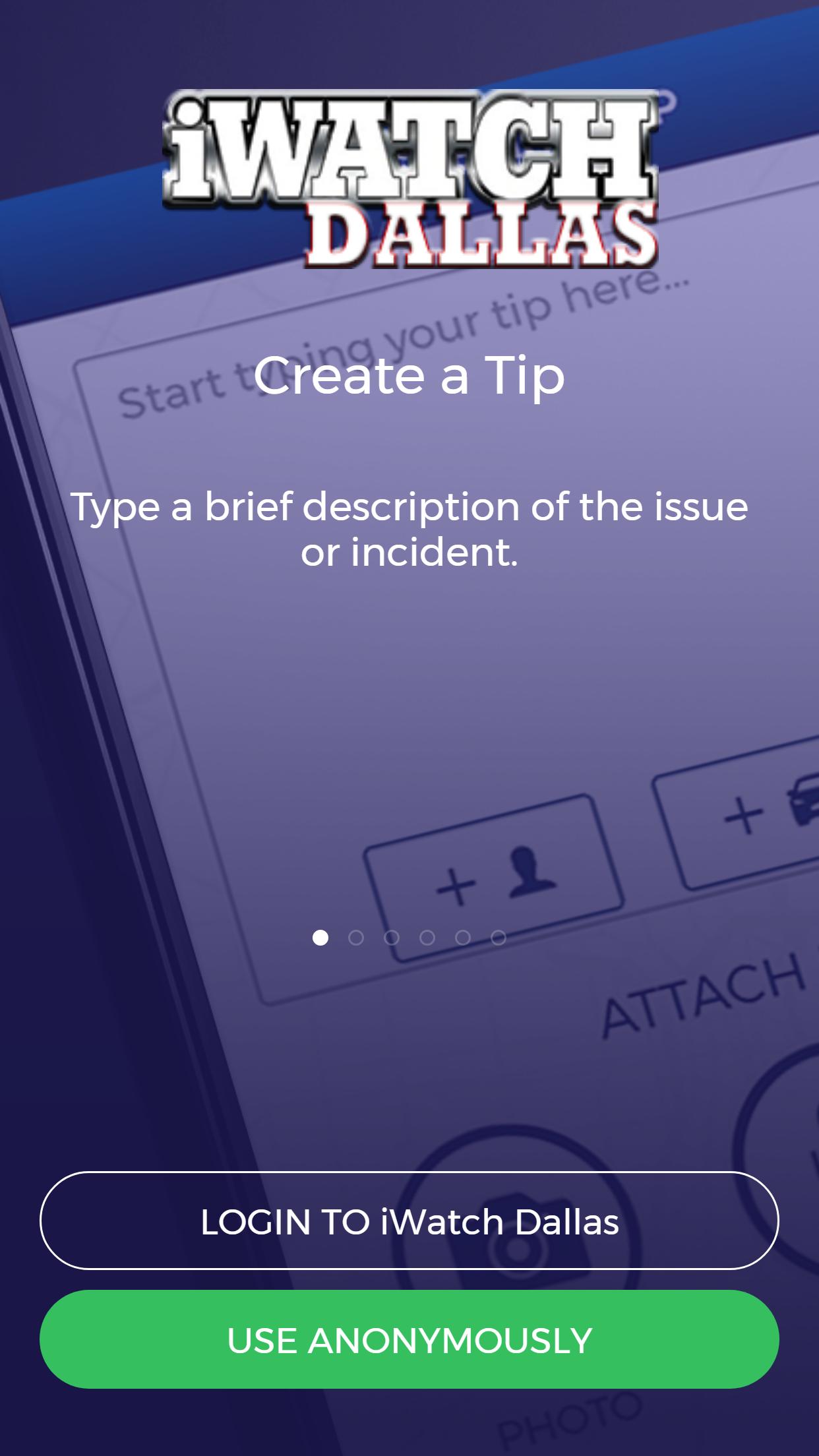 iWatch Dallas é um aplicativo móvel que permite que os cidadãos enviem informações anônimas e não anônimas diretamente aos agentes da lei que fazem parte do nosso sistema. É simples enviar dicas que incluem fotos, vídeos, áudio e texto.