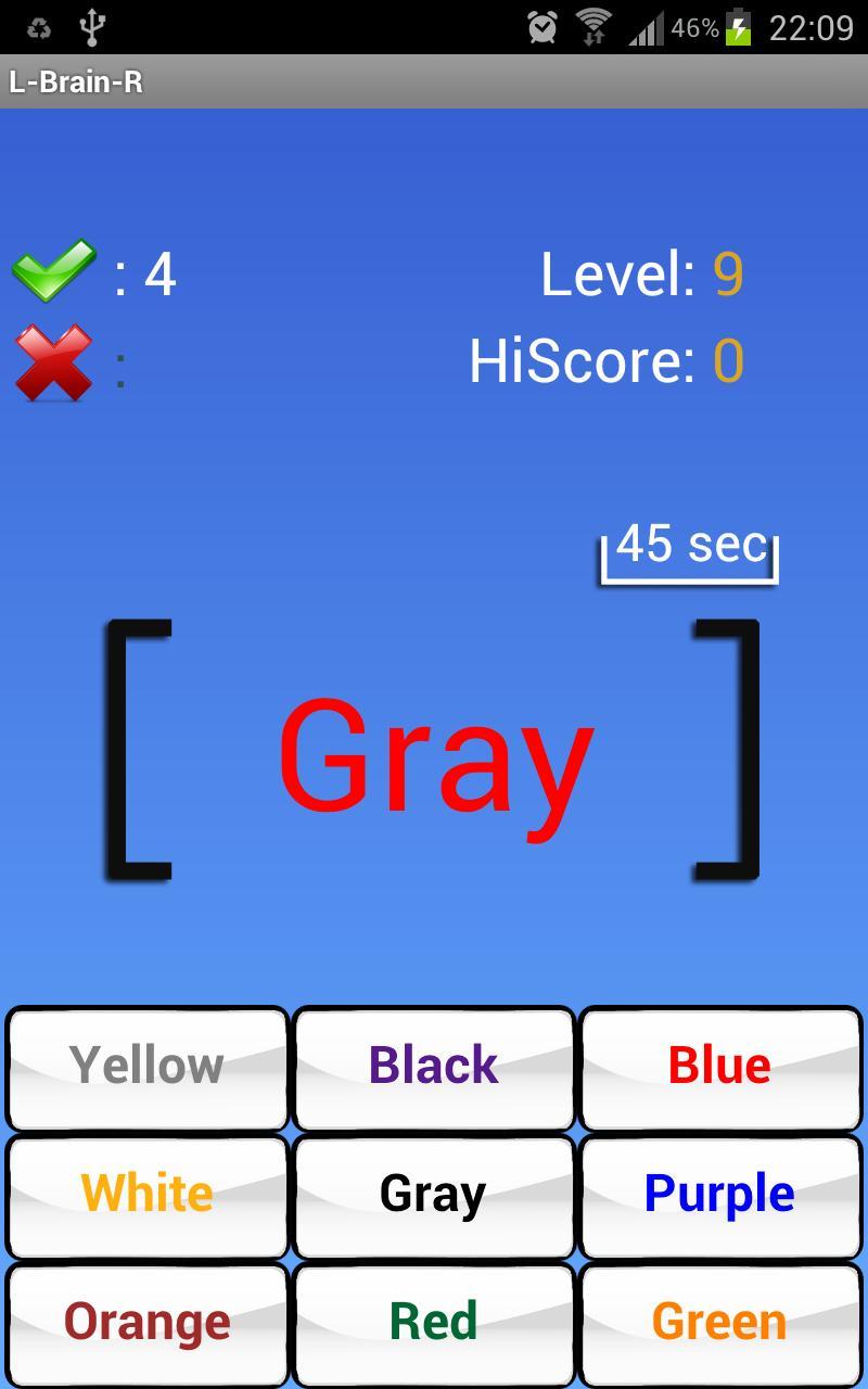 Pressione uma tecla de resposta, esse nome de cor deve corresponder à cor da palavra que exibia na tela.