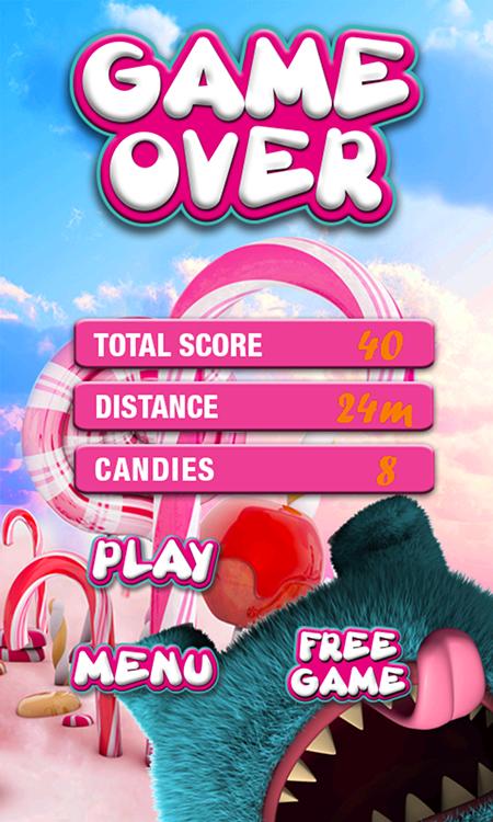 Evite os obstáculos e colete o máximo de doces possível.