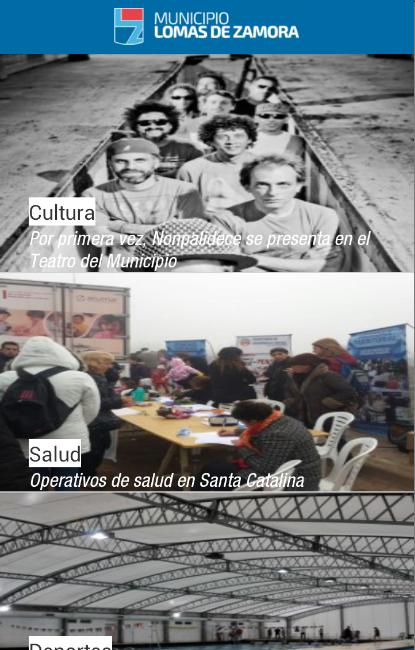 Aplicação móvel do município de Lomas de Zamora, através da qual as notícias podem ser baixadas, acesso ao outdoor de teatro, telefones úteis, comentar e navegar pelas redes sociais
