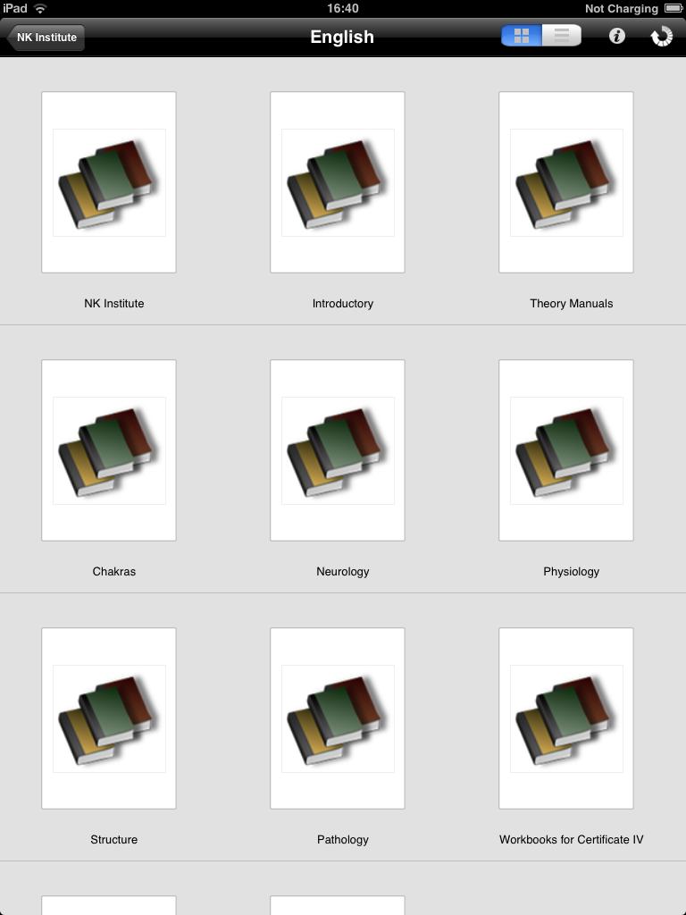 Como há uma quantidade considerável de manuais do curso, também decidimos oferecer versões digitais, portanto, os profissionais de cinesiologia neuroenergética podem facilmente ter acesso a todos os formatos e procedimentos dentro de seu tablet em movimento. Além disso, o manuseio é mais fácil, porque as páginas de girar não são mais necessárias, os links podem ser usados entre procedimentos, anotações e destaque feitos e uma pesquisa de texto completo também é possível.