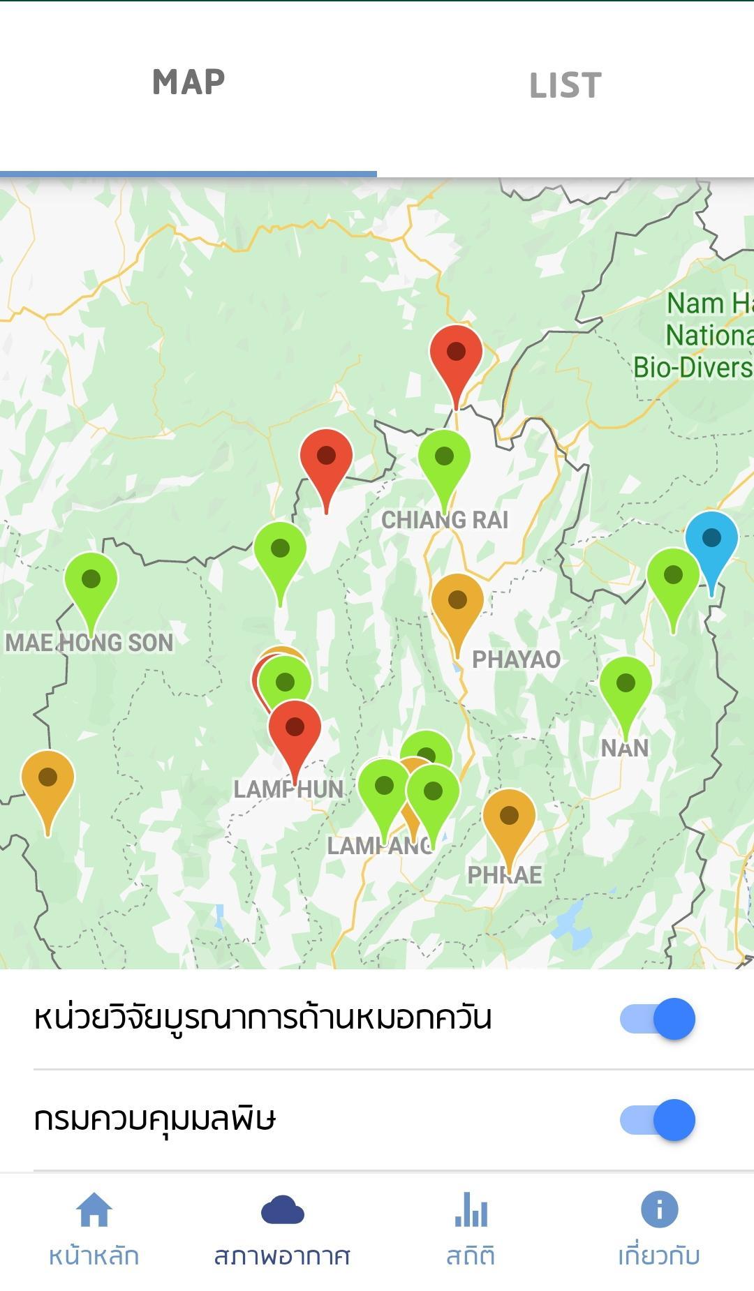Sistema de relatório de poluição na área norte da Tailândia de Shiru - unidade de pesquisa de integração de neblina de fumaça, Centro de Pesquisa em Ciências Ambientais Chiang Mai University