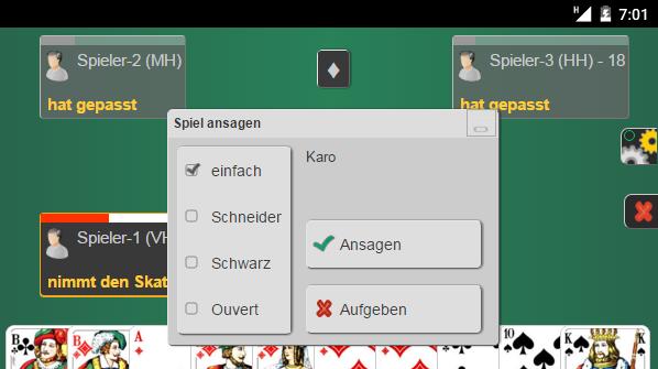 Com o aplicativo Skat-Arena você pode jogar Skat online contra outros jogadores.
