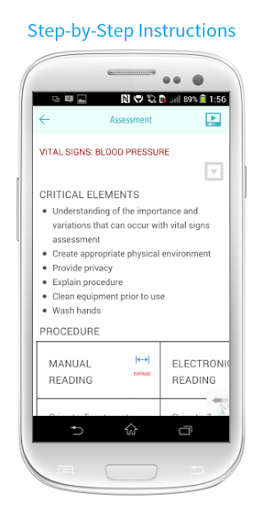 • Instruções passo a passo sobre como realizar habilidades de enfermagem