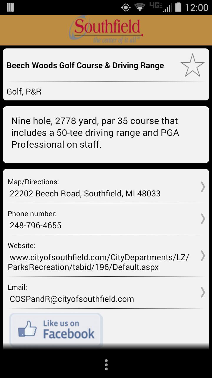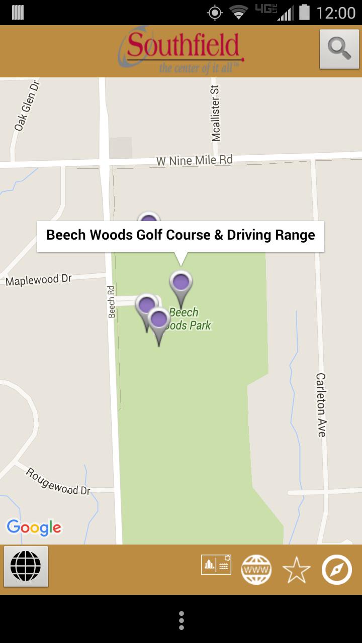 A página principal do aplicativo móvel foi projetada com uma rodovia como Southfield, MI é o centro de tudo. Os sinais da rodovia têm oito (8) categorias fáceis de navegação. As categorias são: comer, brincar, ficar, fazer compras, eventos, mídia, localização e serviços. Cada categoria fornece informações que os usuários móveis precisam na ponta dos dedos. O aplicativo possui muitos recursos, como navegação de volta a turno, discagem direta, suporte a vídeo e áudio, notificações push, links para mídias sociais, um recurso de cartão postal e muito mais. Se você deseja encontrar algo rapidamente ou apenas quiser ver se algo está no aplicativo, use o módulo de pesquisa clicando no ícone de pesquisa localizado no canto superior direito do aplicativo.