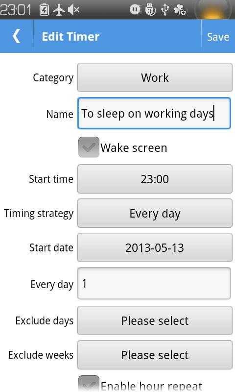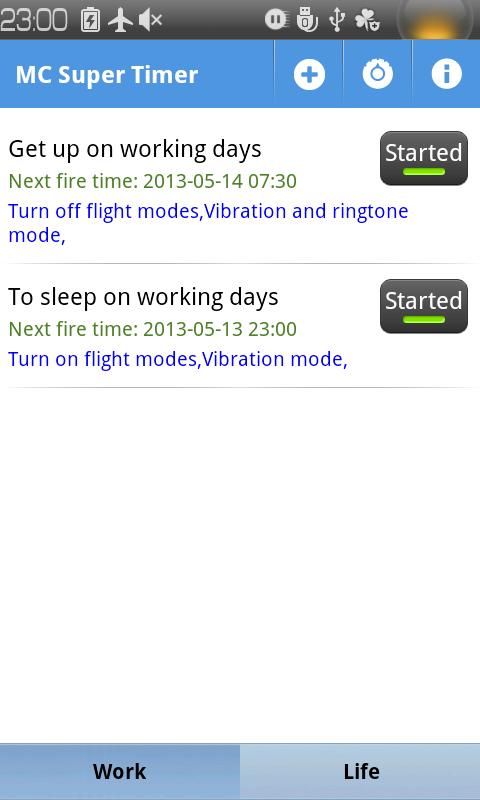 Timer útil para concluir uma variedade de tarefas, estratégia de tempo muito flexível para oferecer suporte ao timer, cada temporizador pode estar associado a várias tarefas. Por exemplo, crie um cronômetro de segunda a sexta -feira 8:00 executado como um despertador para o cronômetro e adicione várias tarefas, como tocar música, desligar o modo de voo, abrir o perfil padrão, aumentar o brilho da tela