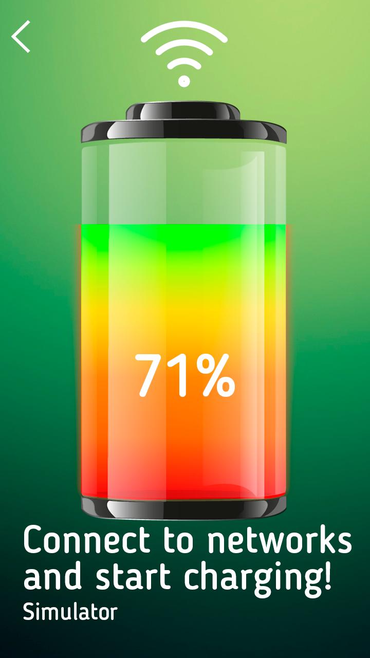 Se você não possui dispositivo de carregamento externo como o Power Bank, finja que cobra telefone conectando -se à rede sem fio! A bateria não será carregada de verdade, mas o aplicativo fará parecer que está sendo cobrado! Tire sarro de seus amigos ou colegas, agindo como roubar poder da conexão Wi-Fi!
