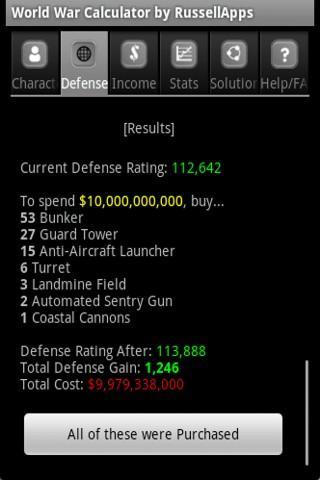 * Calcule os edifícios que você pode comprar com uma quantia de dinheiro inserida para defesa ou renda.