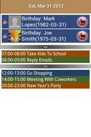 Календари можно просматривать индивидуально или в комбинации, генерируя интегрированный календарь. Календарь All-In-One Calcemank обеспечивает форматы дневного, недели и месяца просмотра. Каждый формат просмотра настраивается в соответствии с предпочтениями пользователя. Формат просмотра недели, поддерживающий как 5-дневный (рабочий день), так и 7-дневные (целую неделю). Каждый календарь имеет цветной кодировки, чтобы отличить друг от друга. Пользователь может добавить/просмотреть/отредактировать событие календаря или контрольную марка. Создайте функцию поиска, чтобы легко найти ваши задачи/события.
