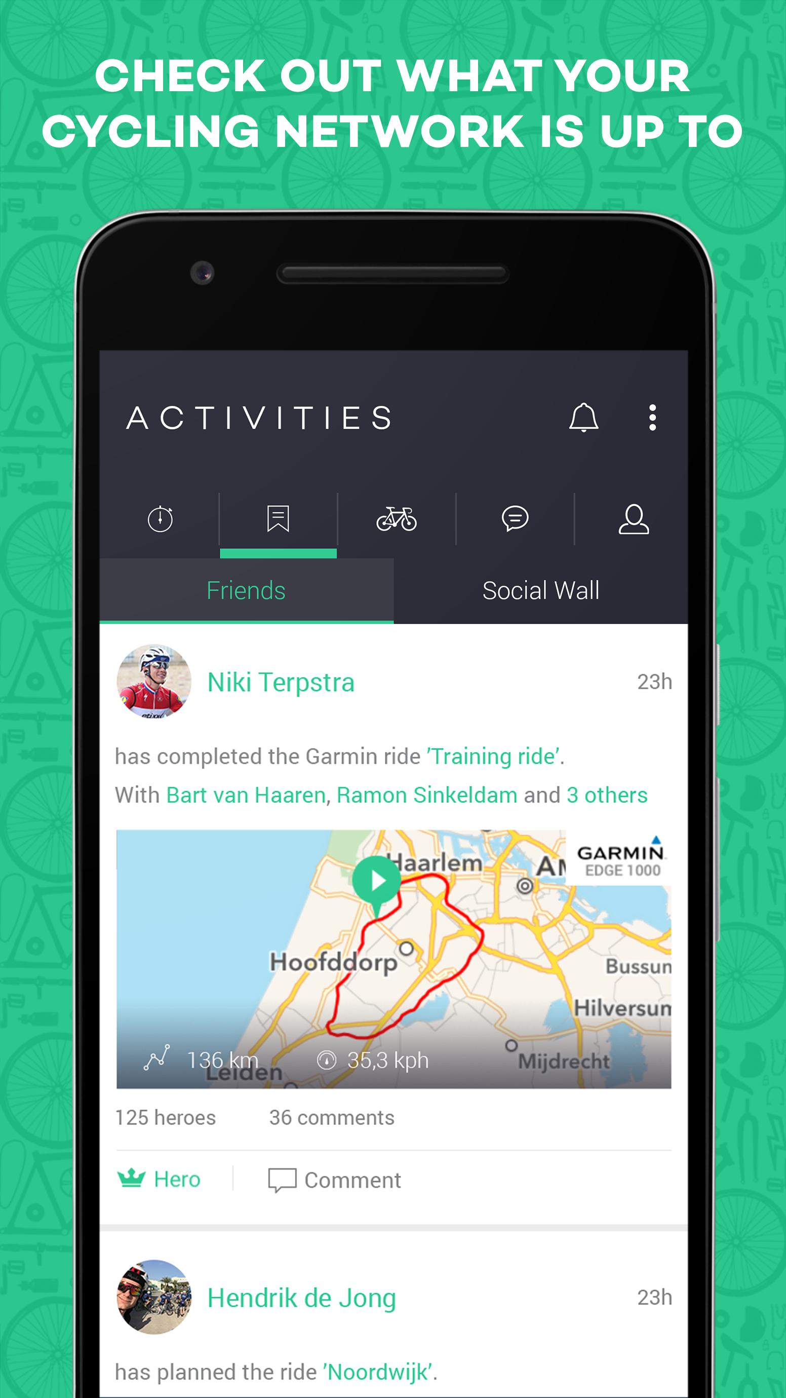 - Следуйте за своими друзьями и посмотрите на их профили, чтобы выяснить, каковы их любимые маршруты и как выглядит их любимый велосипедный комплект.