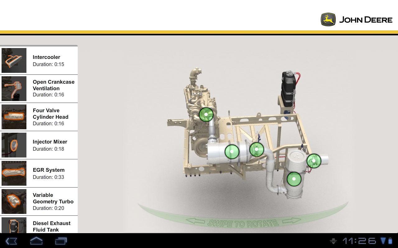 Это приложение поможет вам лучше понять систему SCR John Deere, а также выхлопного фильтра и системы DEF. Изучите имена и функцию отдельных компонентов и поток каждой системы.