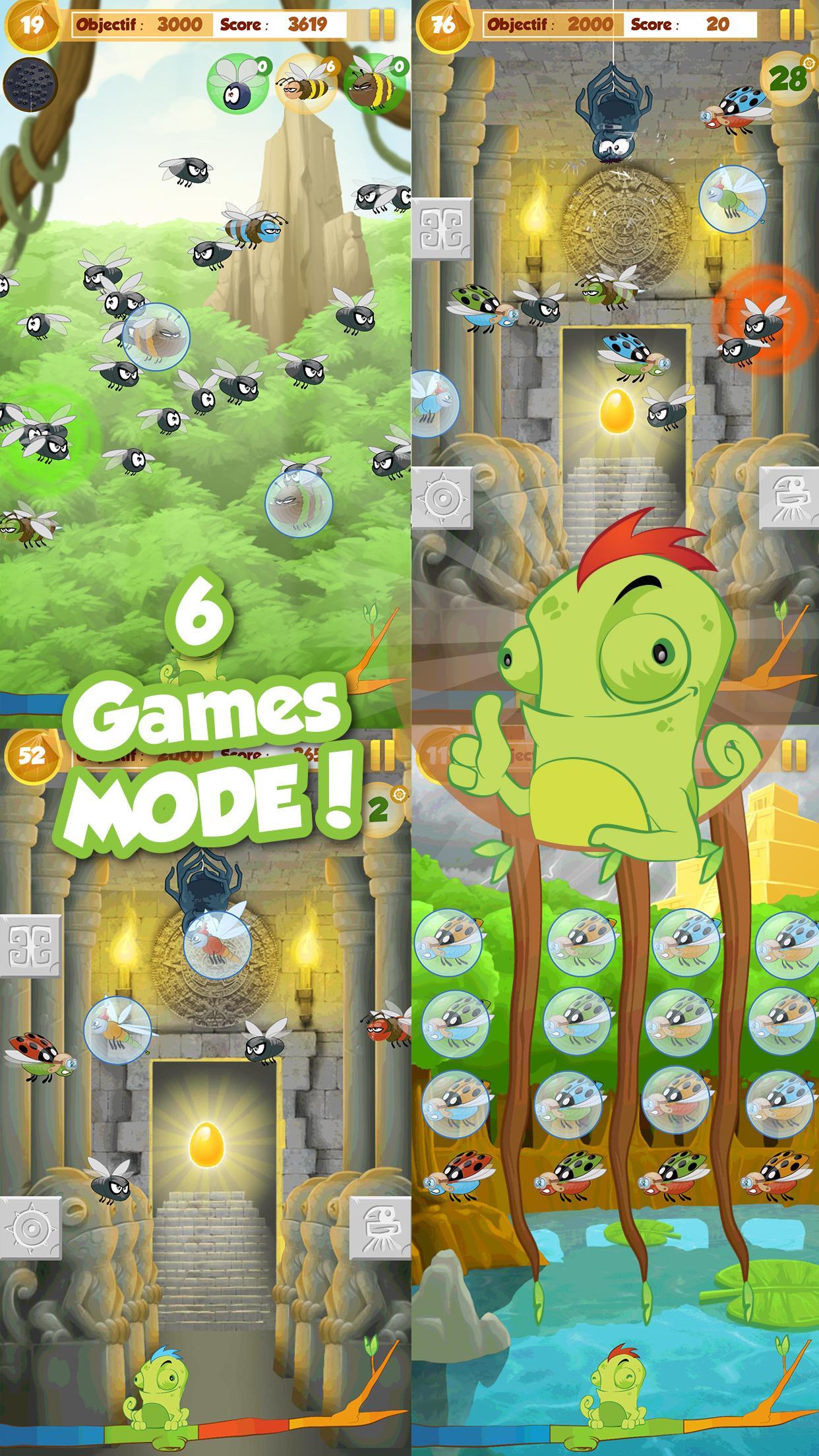 • Переместите хамелеон, чтобы изменить свой цвет и использует свой язык, чтобы съесть как можно больше насекомых