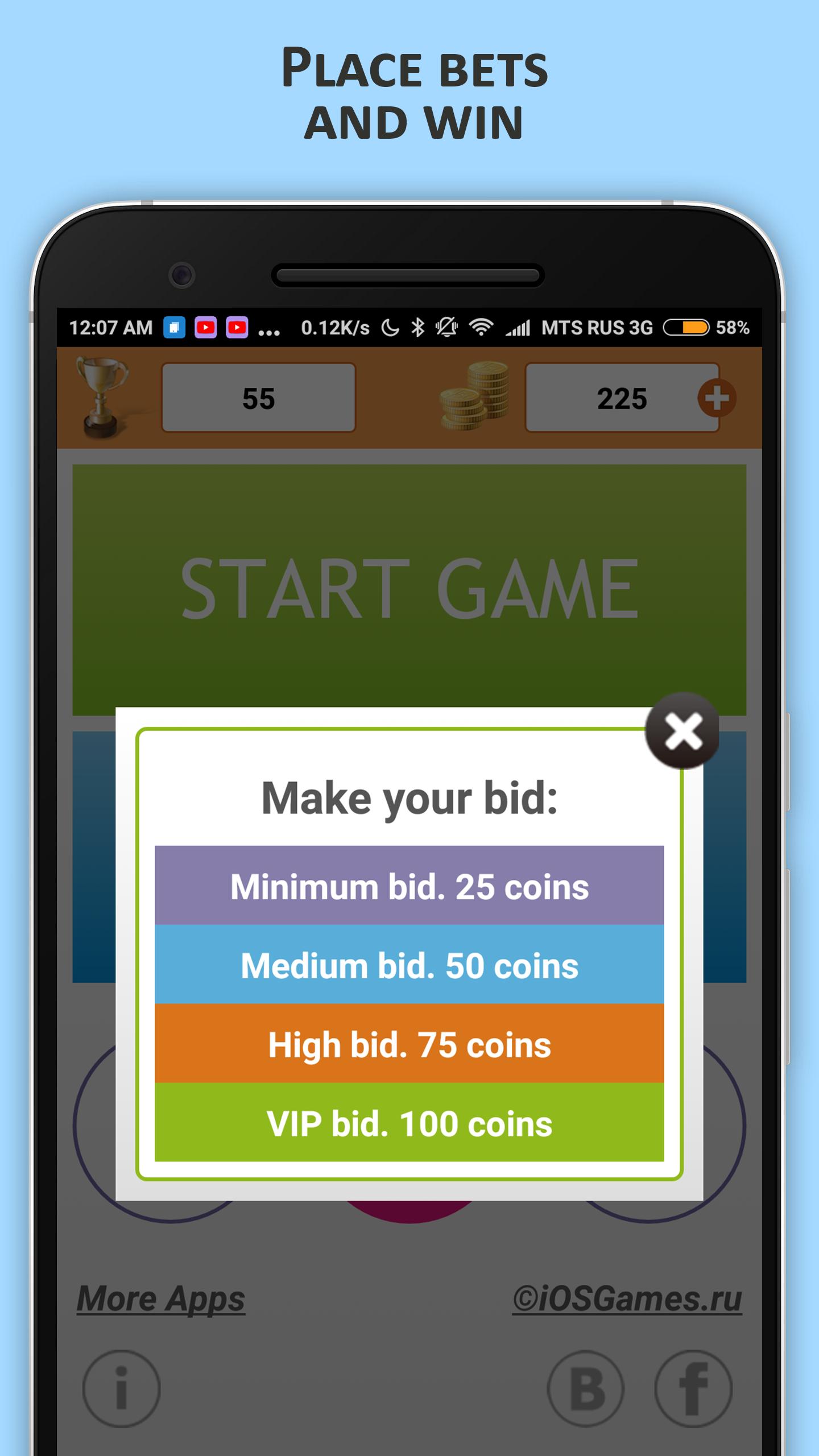 - Сделайте предложения, рискуйте и зарабатывайте монеты!