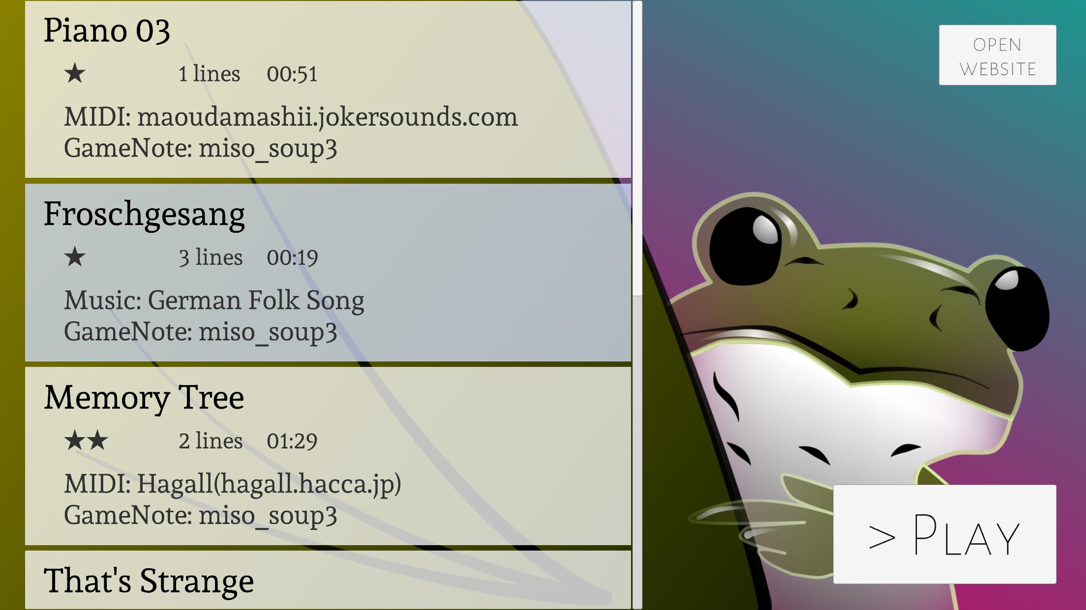 Счет и источник цитирования песни, используемой в игре, находятся на веб -сайте.
