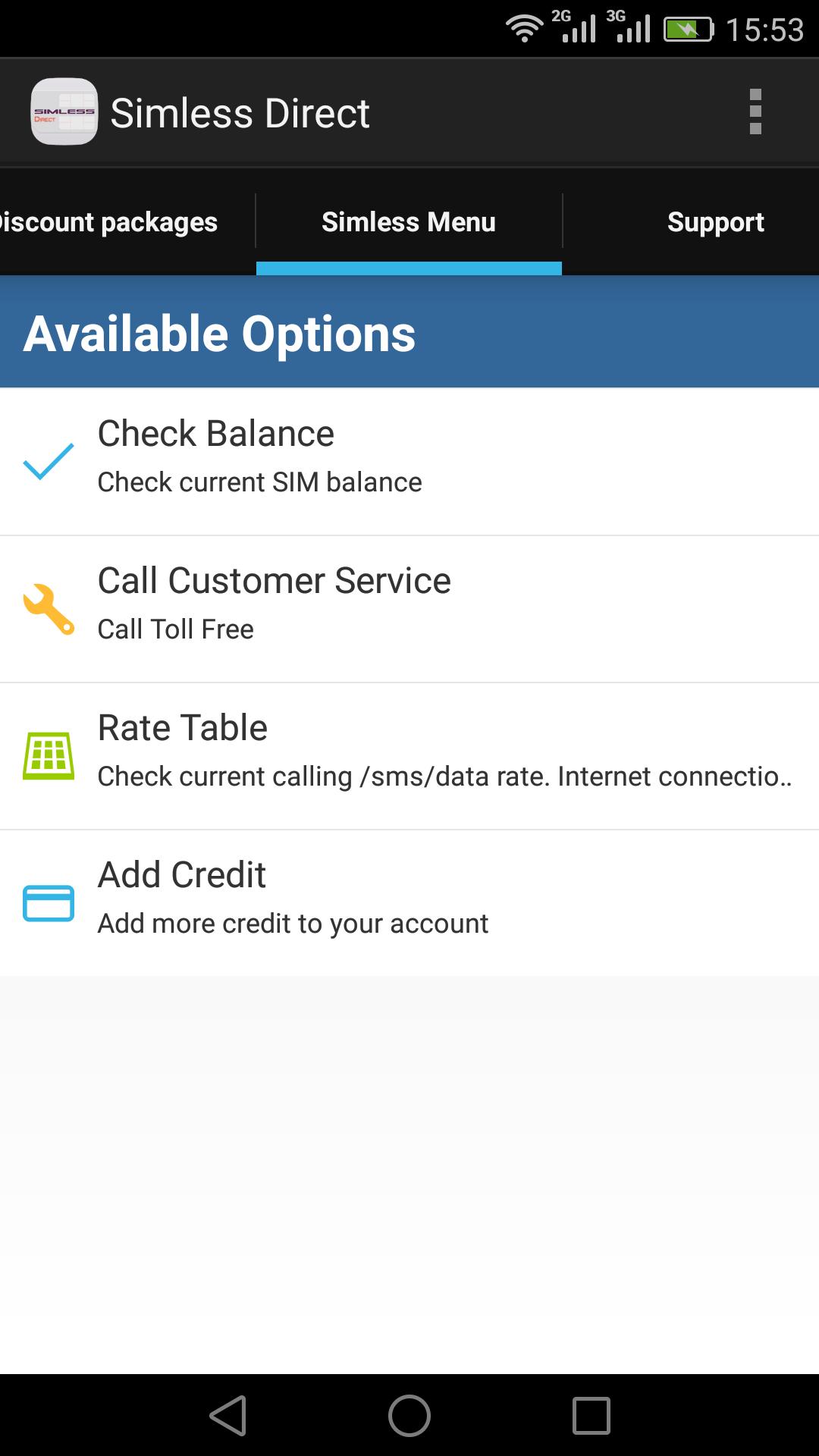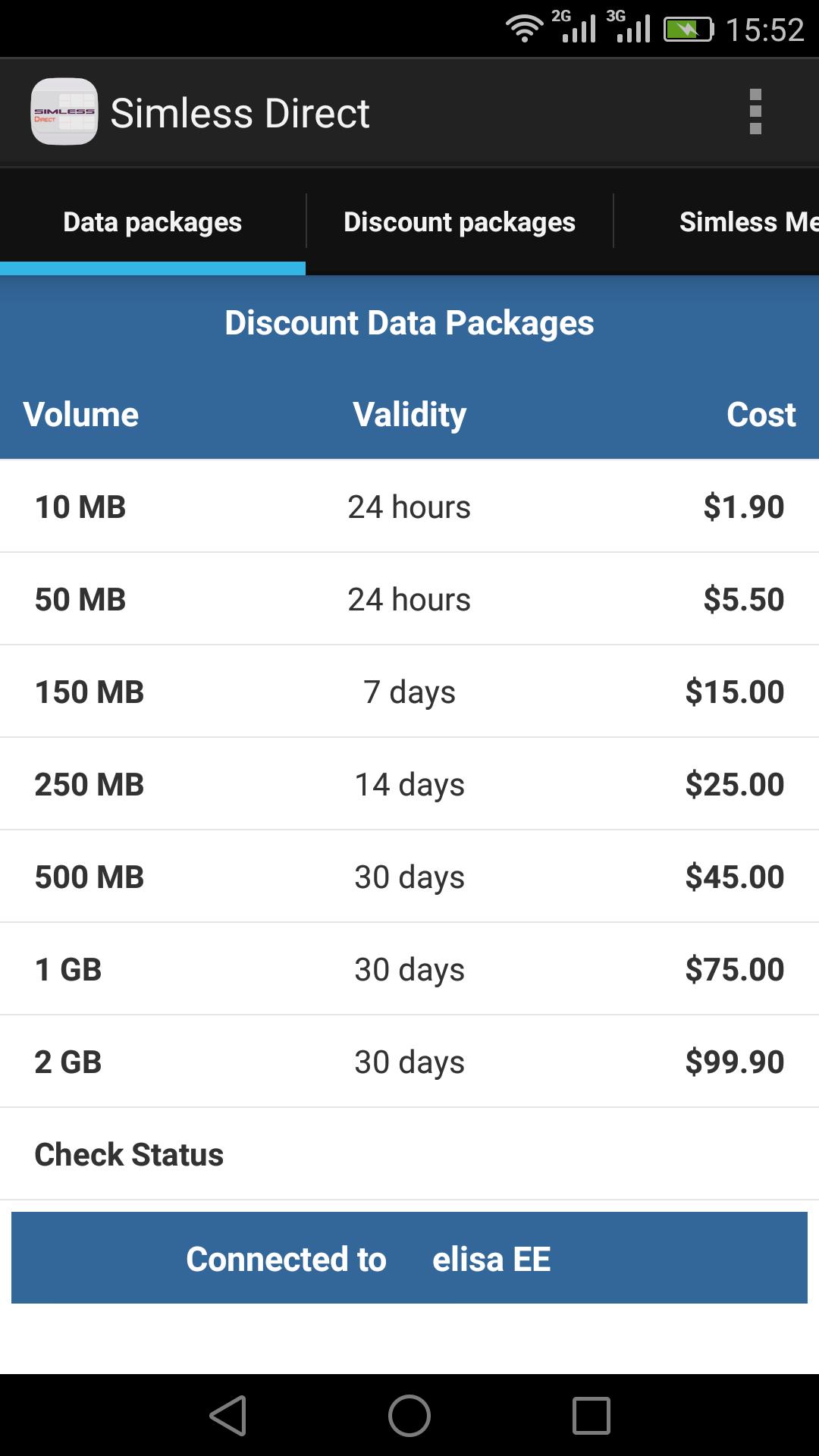 Simless Direct - это приложение, которое предоставляет пользователю возможность выбирать данные/голосовые пакеты в стране -хозяине (во время роумирования за границей) и активировать их.