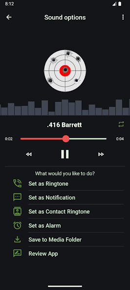 Параметры персонализации: установите звуки в качестве рингтонов, сигналов тревоги или уведомлений для интеграции силы огнестрельного оружия в вашу повседневную жизнь.