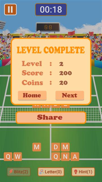 Играя и бросая вызов вам навыкам словарного запаса в этой игре головоломки, вы можете проверить себя в разных спортивных головоломках со словами такого спорта, как футбол, гольф, американский футбол, баскетбол, легкая атлетика, бокс, крикет, теннис, формула1 и бейсбол. Эта спортивная игра предполагает много спортивных головоломок, давая вам возможность развиваться на разных уровнях. По мере продвижения Word Game становится более сложной, и вам нужно думать быстрее, чтобы угадать правильные слова и выиграть самые высокие оценки.