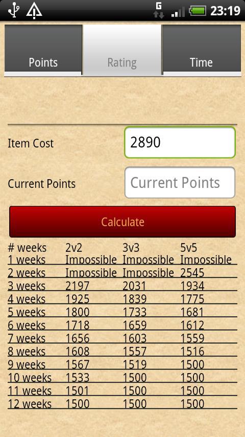 * Вычисляет точки максимального завоевания для арены/рейтинговых поля боя в зависимости от вашего рейтинга
