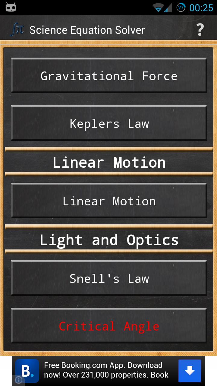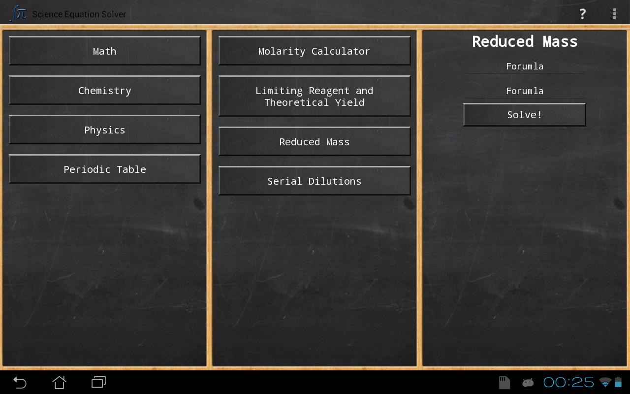 ->Selection of common equation solvers for Chemistry, Physics and Math.