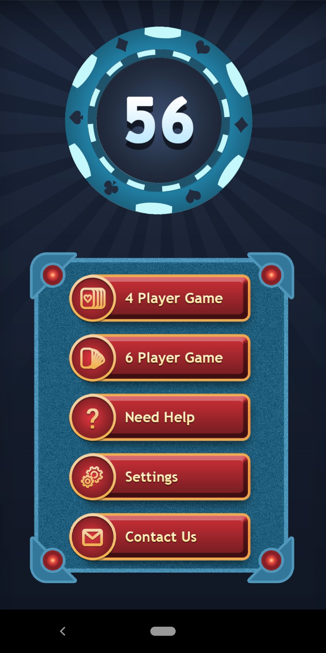 56 ประกอบด้วยผู้เล่น 4 คน โดยผู้เล่น 2 คนเผชิญหน้ากันเป็นทีม หรือผู้เล่น 6 คน โดยมีผู้เล่น 3 คนตั้งทีม ใช้ไพ่ 48 ใบที่เลือกจากสำรับไพ่มาตรฐาน 56 สำรับ 2 สำรับในการเล่น ผู้เล่นแต่ละคนมีไพ่ในมือ 12 ใบในเกมสำหรับผู้เล่น 4 คน และไพ่ 8 ใบในเกมสำหรับผู้เล่น 6 คนในชุดไพ่ "ฝรั่งเศส" ตามปกติแต่ละชุด ได้แก่ หัวใจ เพชร ดอกจิก และโพดำ เป้าหมายคือการเอาชนะกลอุบายด้วยไพ่อันมีค่า แจ็คและเก้าเป็นไพ่ที่มีมูลค่าสูงสุดที่ 3 และ 2 แต้มตามลำดับ ตามด้วยเอซและสิบที่ 1 แต้ม และ K และ Q มี 0 แต้ม ' 56 ' เล่นโดยใช้ไพ่คู่ เช่น มีแจ็คเพชรอยู่สองตัว ผู้เล่นที่เล่นแจ็คตัวแรกจะมีลำดับความสำคัญเหนือผู้เล่นที่เล่นแจ็คที่ 2 ในเคล็ดลับเดียวกัน มูลค่ารวมของไพ่ทั้งหมดรวมกันได้ 56 ซึ่งทำให้เกมมีชื่อ
