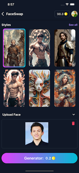 เครื่องกำเนิด AI ของเรารองรับรูปแบบรูปภาพและวิดีโอ วิดีโอสนุก ๆ อวตารส่วนตัวตัวแก้ไขวิดีโอ AI ของเราช่วยให้คุณเพลิดเพลินไปกับความสนุกสนานในการเปลี่ยนใบหน้า ดาวน์โหลด AvaSwap ตอนนี้และสัมผัสกับความตื่นเต้นของเทคโนโลยีการสลับใบหน้าหนึ่งคลิก