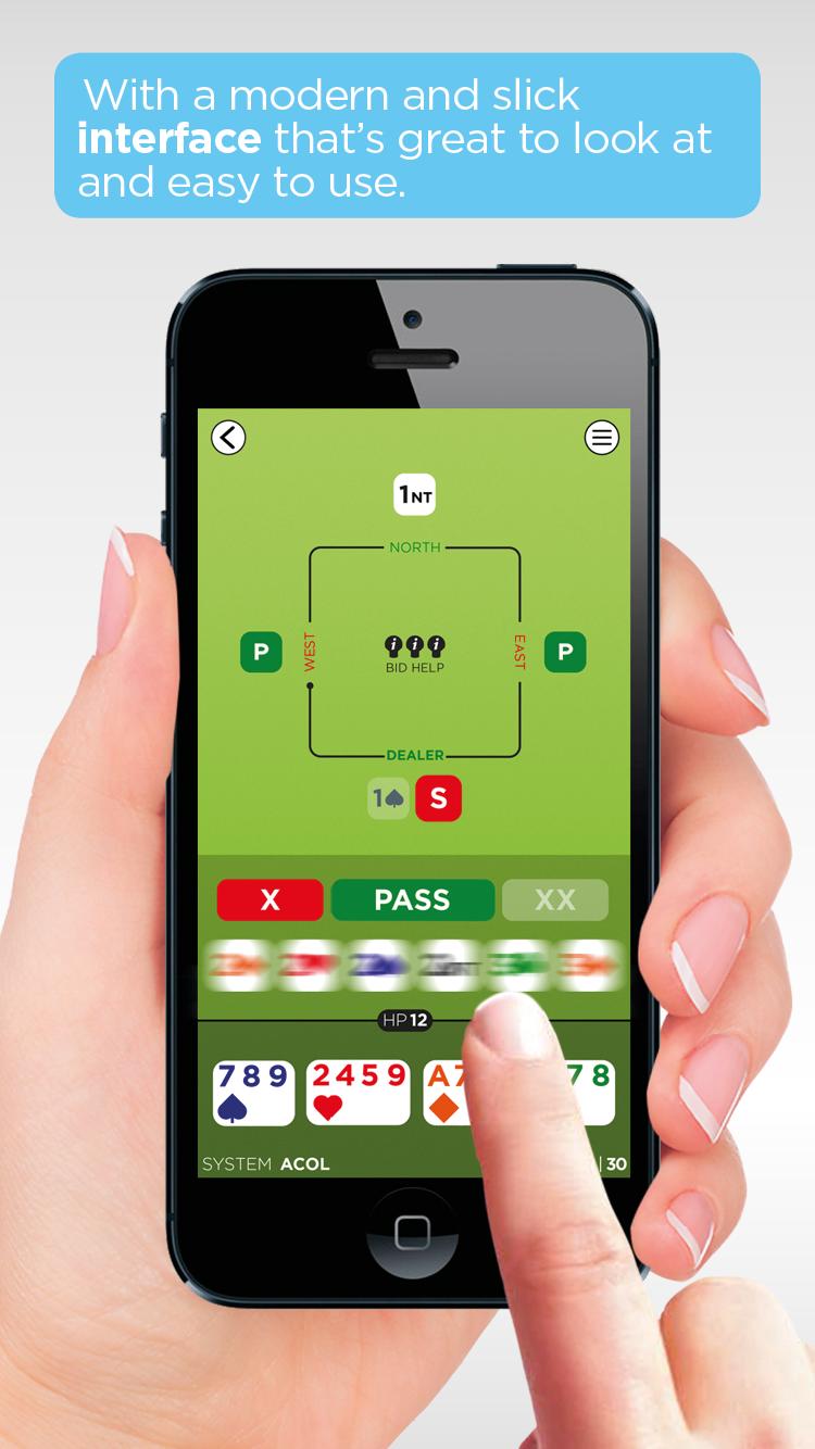 เราได้รับการดูแลเป็นอย่างดีด้วยการออกแบบกราฟิกและอินเทอร์เฟซเพื่อสร้างประสบการณ์การเล่นการ์ดที่ใช้งานง่ายและใช้งานง่ายที่สุดเท่าที่จะเป็นไปได้ แทนที่จะเป็นตัวแทนการ์ดแบบดั้งเดิมเราได้เริ่มต้นจากพื้นดินและเลือกวิธีที่สะอาดที่สุดในการถ่ายทอดข้อมูลที่ผู้เล่นเกมสะพานต้องการ ทุกรายละเอียดได้รับการคิดอย่างรอบคอบและอะไรก็ตามที่นำออกมา