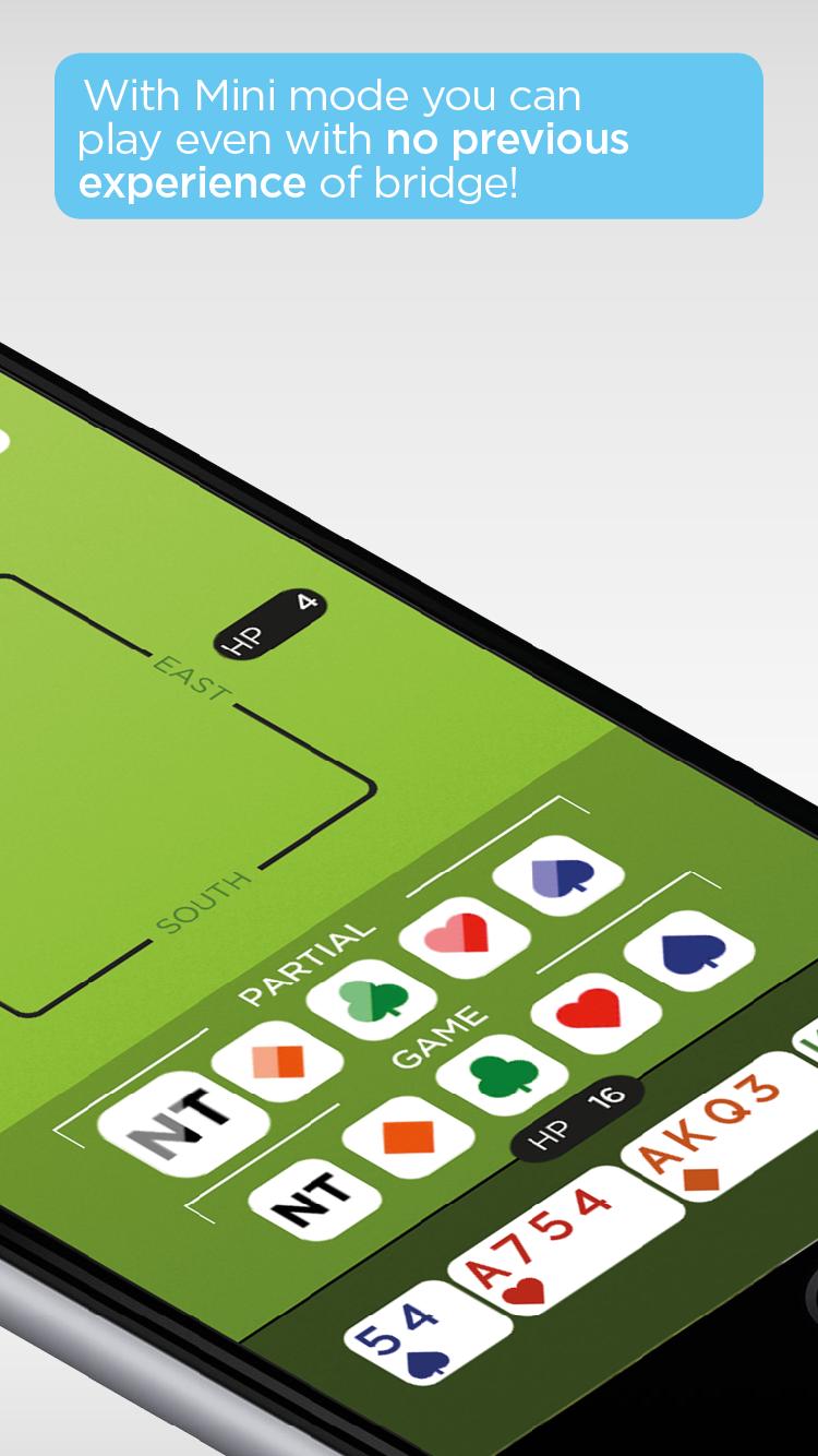 ด้วยโหมดมินิคุณสามารถเล่นบริดจ์ได้แม้จะไม่มีประสบการณ์สะพานมาก่อน! หากคุณรักเกมไพ่นี่เป็นโอกาสของคุณที่จะลองเกมไพ่ที่ยิ่งใหญ่ที่สุดของพวกเขาทั้งหมด Mini Bridge ไม่จำเป็นต้องมีความรู้ในการเสนอราคาที่อนุญาตให้คุณมีสมาธิในการใช้กลอุบาย ด้วยการแข่งขันรายสัปดาห์คุณสามารถเปรียบเทียบผลลัพธ์ของคุณกับเพื่อนและค่อยๆปรับปรุงการเล่นของคุณ เมื่อคุณพร้อมที่จะลอง Full Bridge กระโดดเข้าสู่การแข่งขันลีกปกติด้วยการเสนอราคาที่หลากหลายคุณสามารถเล่นและเรียนรู้ได้