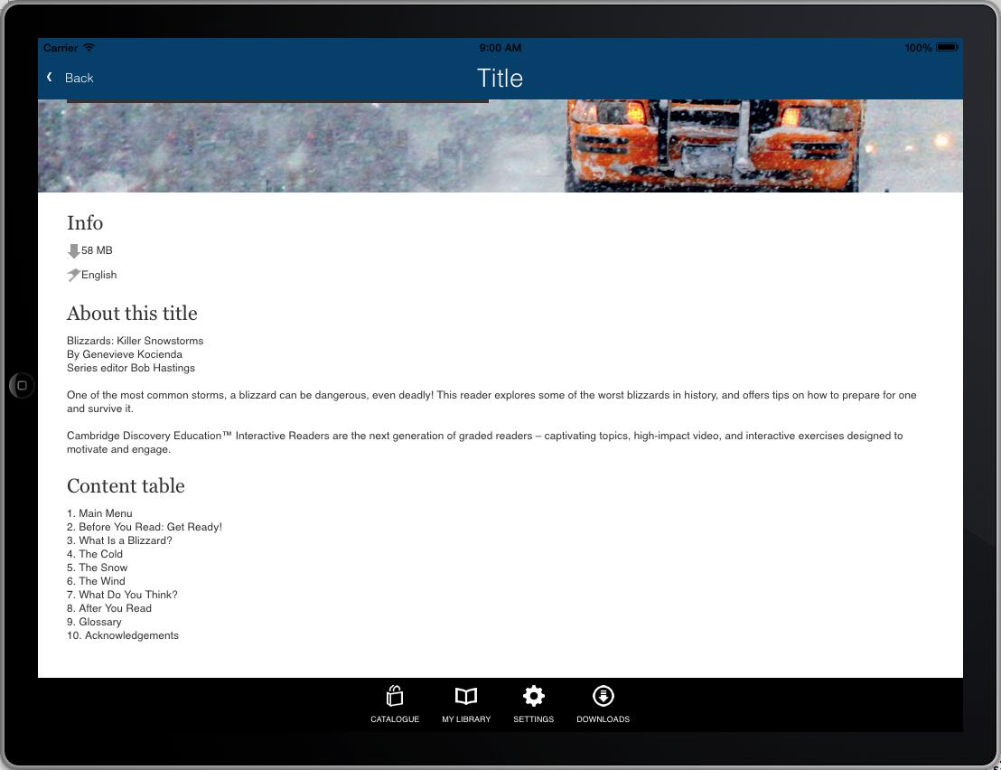 ผู้อ่านแบบอินเทอร์แอคทีฟของ Cambridge Discovery Education ™เป็นแอพผู้อ่านรุ่นต่อไปเพื่อช่วยให้คุณเรียนรู้ภาษาอังกฤษด้วยหัวข้อที่น่าสนใจวิดีโอการศึกษาการค้นพบที่มีผลกระทบสูงและแบบฝึกหัดแบบโต้ตอบ