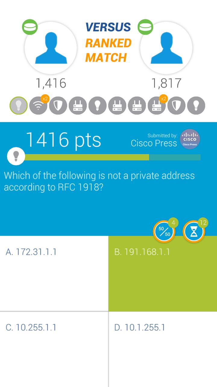 Cisco Geek Factor เป็นเกม Trivia แบบอินเทอร์แอคทีฟมือถือที่ทดสอบความรู้ของ Cisco ของคุณ มันมีคำถามที่บริจาคโดย Cisco Press ในหกหมวดหมู่: ทั่วไป, การกำหนดเส้นทาง/การสลับ, ไร้สาย, ความปลอดภัย, การทำงานร่วมกันและศูนย์ข้อมูล/คลาวด์ ลองดูสิ - คุณอาจประหลาดใจว่าคุณรู้มากแค่ไหน